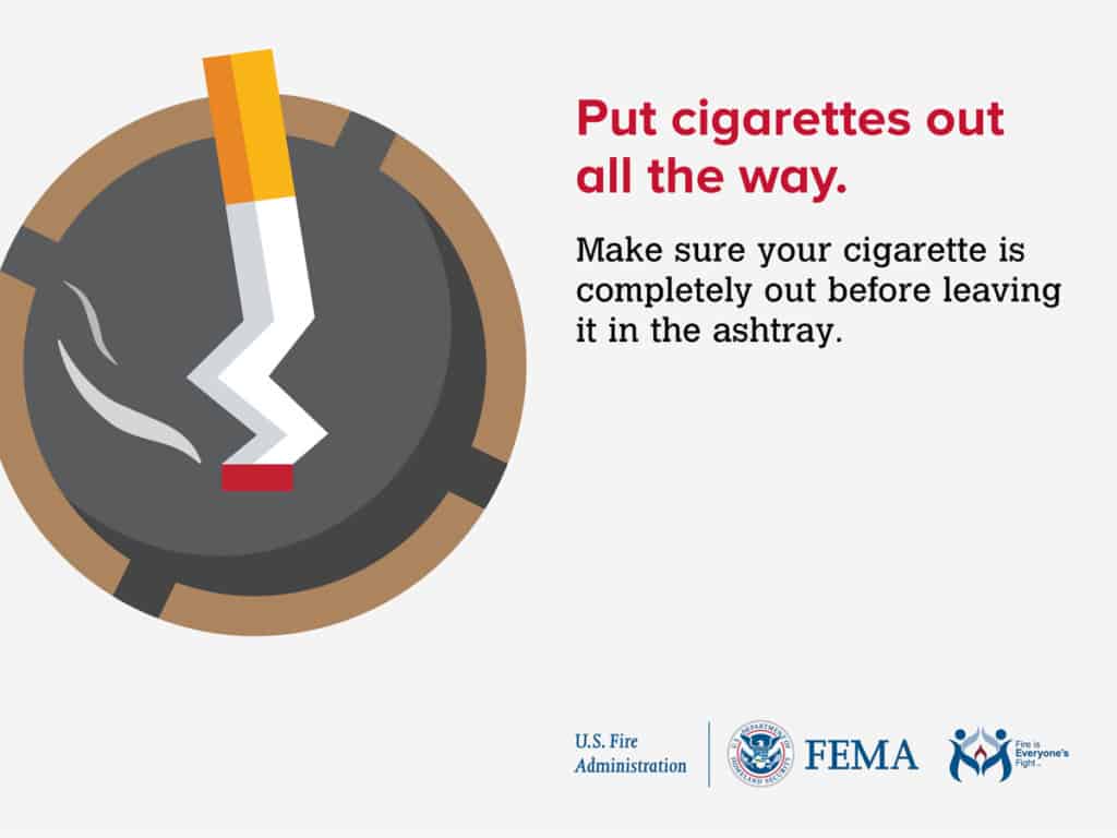 Smoking materials, including cigarettes, pipes, and cigars, started an estimated 17,200 home structure fires reported to U.S. fire departments in 2014. These fires caused 570 deaths, 1,140 injuries and $426 million in direct property damage. Smoking materials caused 5% of reported home fires, 21% of home fire deaths, 10% of home fire injuries, and 6% of the direct property damage from home fires. Here is what you need to know about keeping your home and family safe!